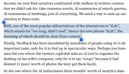 We need a new acronym… Ai;DR?