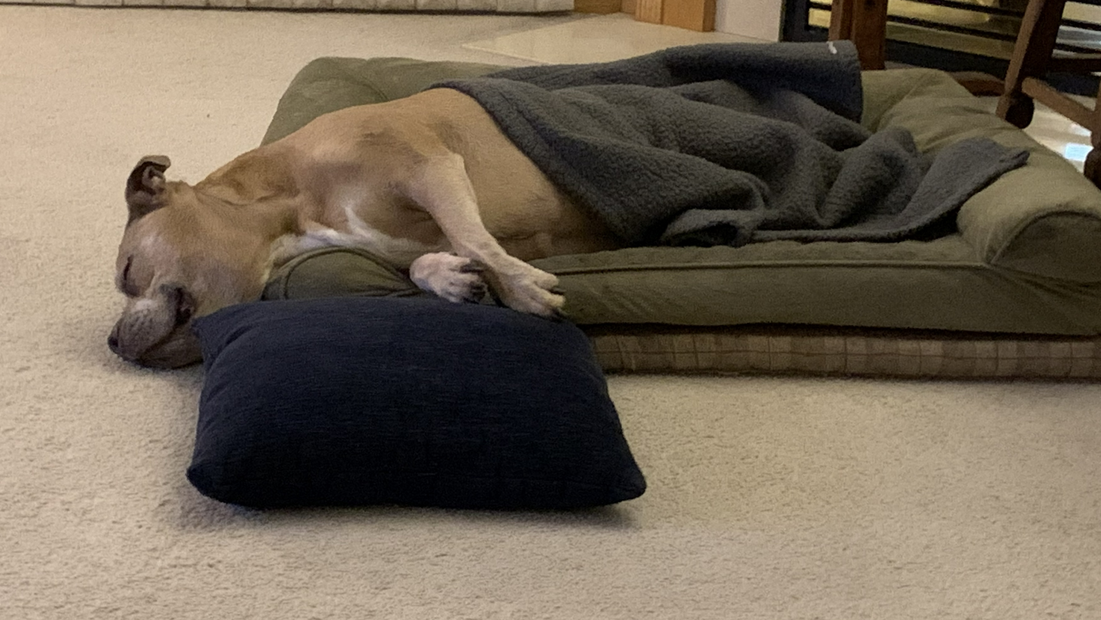 I looked over one evening and saw she’d found a new way to sleep: