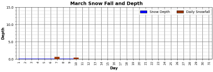 Two minor dustings that warm temperatures quickly erased. Snow depth has been essentially zero since late February.