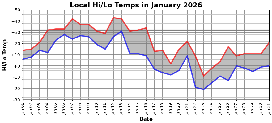 Our January Thaw was quite warm, but we had that cold snap in the latter half of the month: