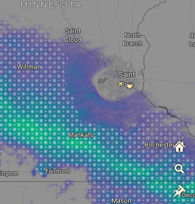 Those two dustings were so mild that the “heat bubble” created by the metro area of the Twin Cities actually kept the front edge of the “storm” at bay: