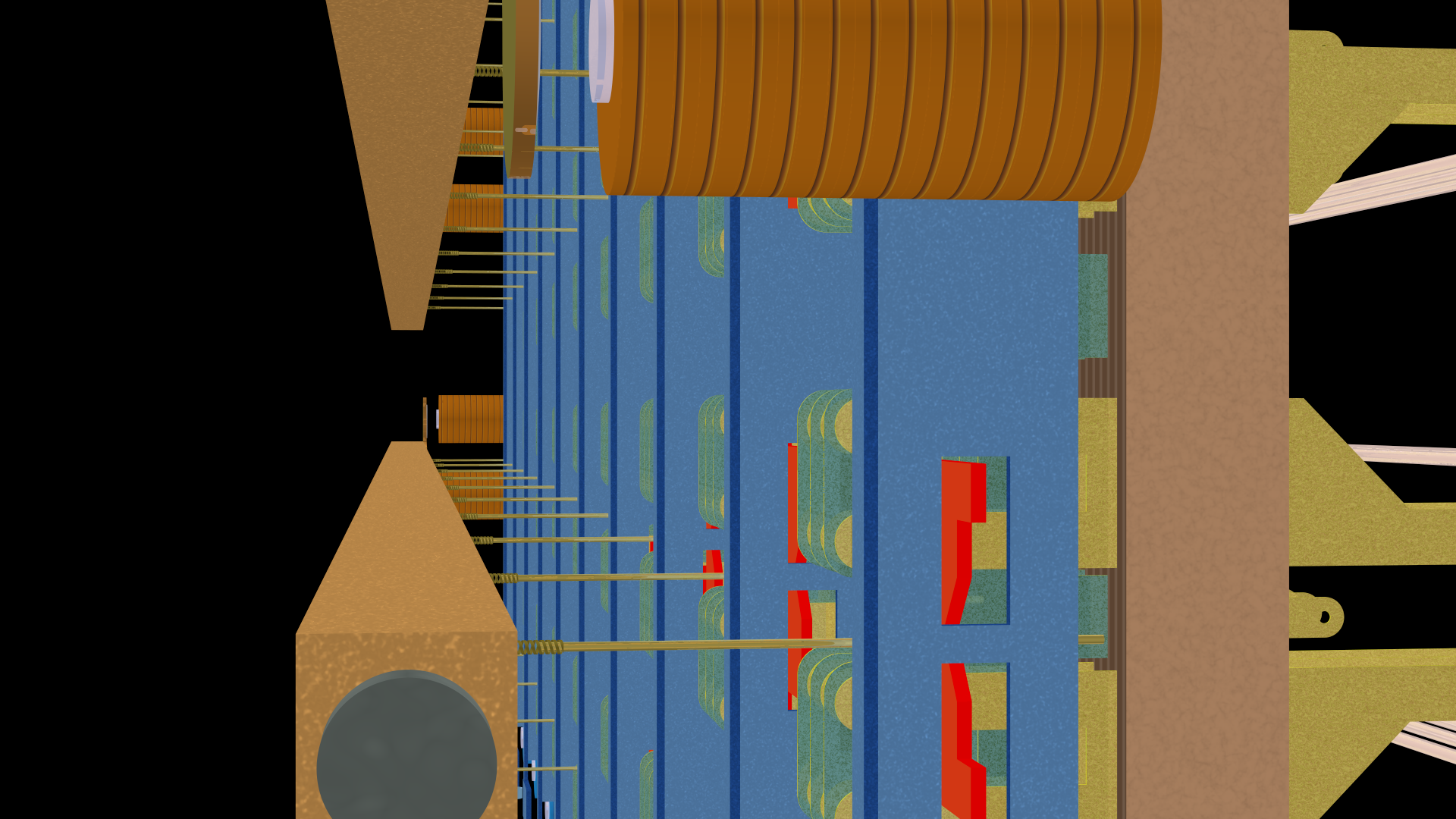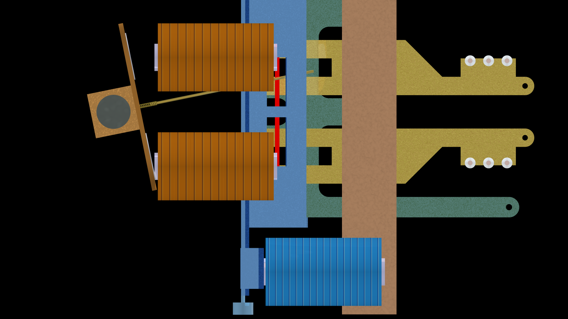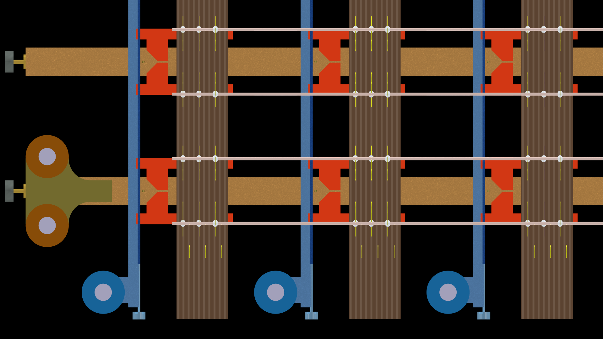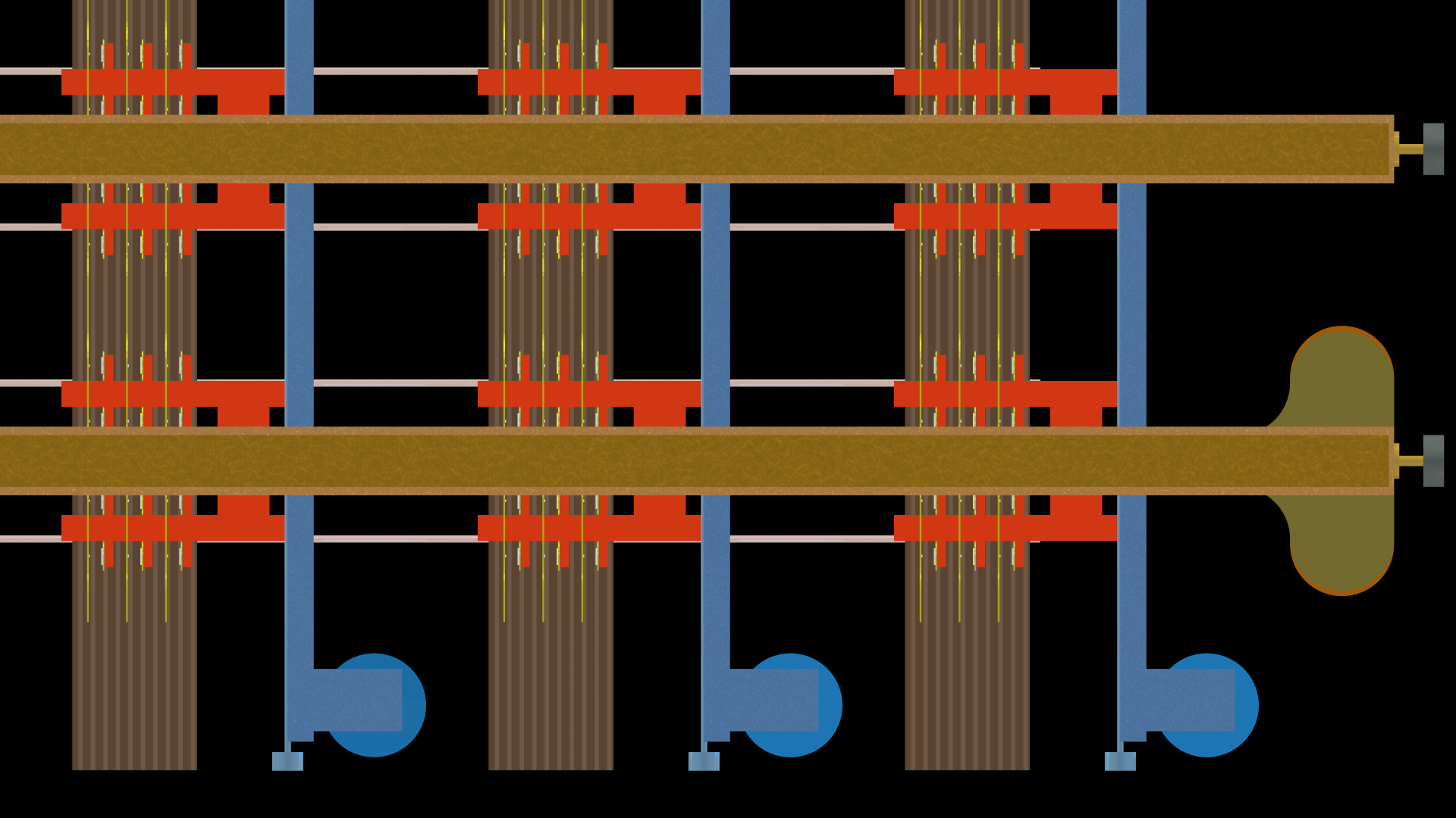 Note the five select bars (dark tan) and ten hold bars (blue). Visible to the far right are three pairs of select magnets. Visible across the bottom are the ten hold magnets (also blue).