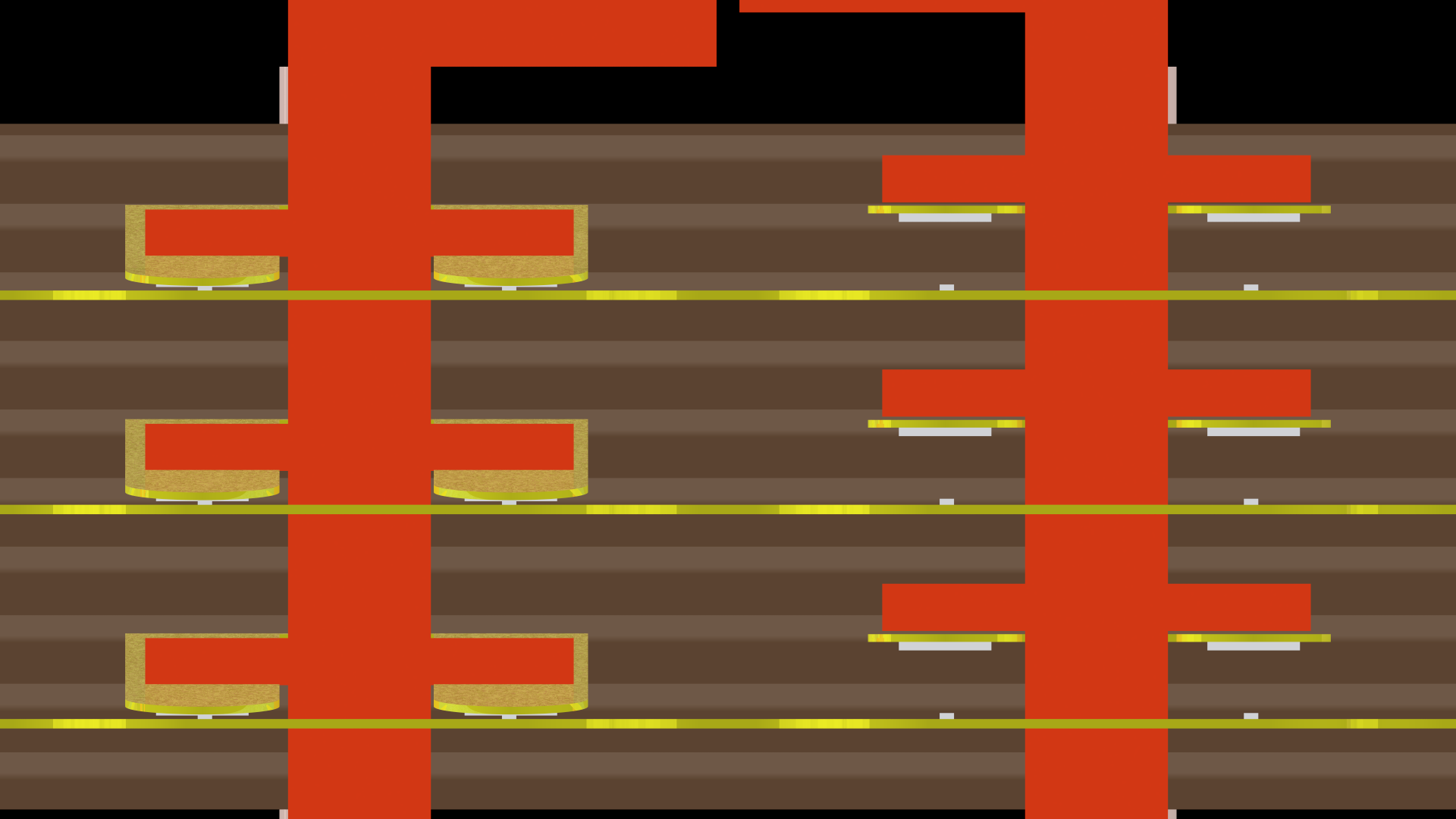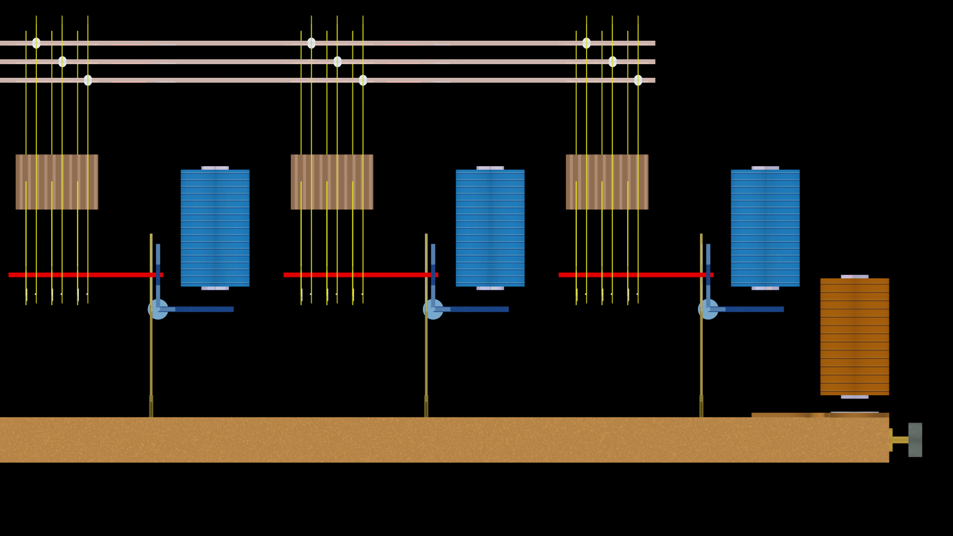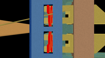 On each column support, note the three vertical conductors (gold) that join the tip, ring, and sleeve lines in each column.