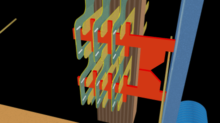 To illustrate how crossbar switches work, I created a 3D model in POV-Ray (the venerable 3D ray tracing application I’ve posted about before).