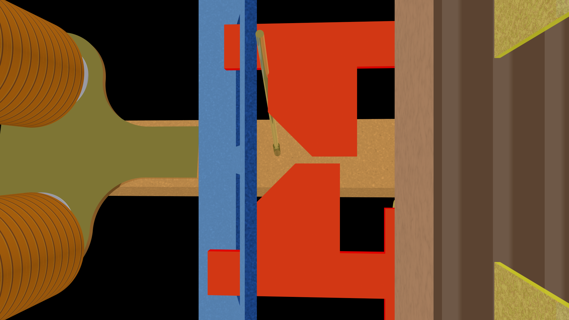 Here is an orthographic view of the back of the crossbar, lower-left corner: