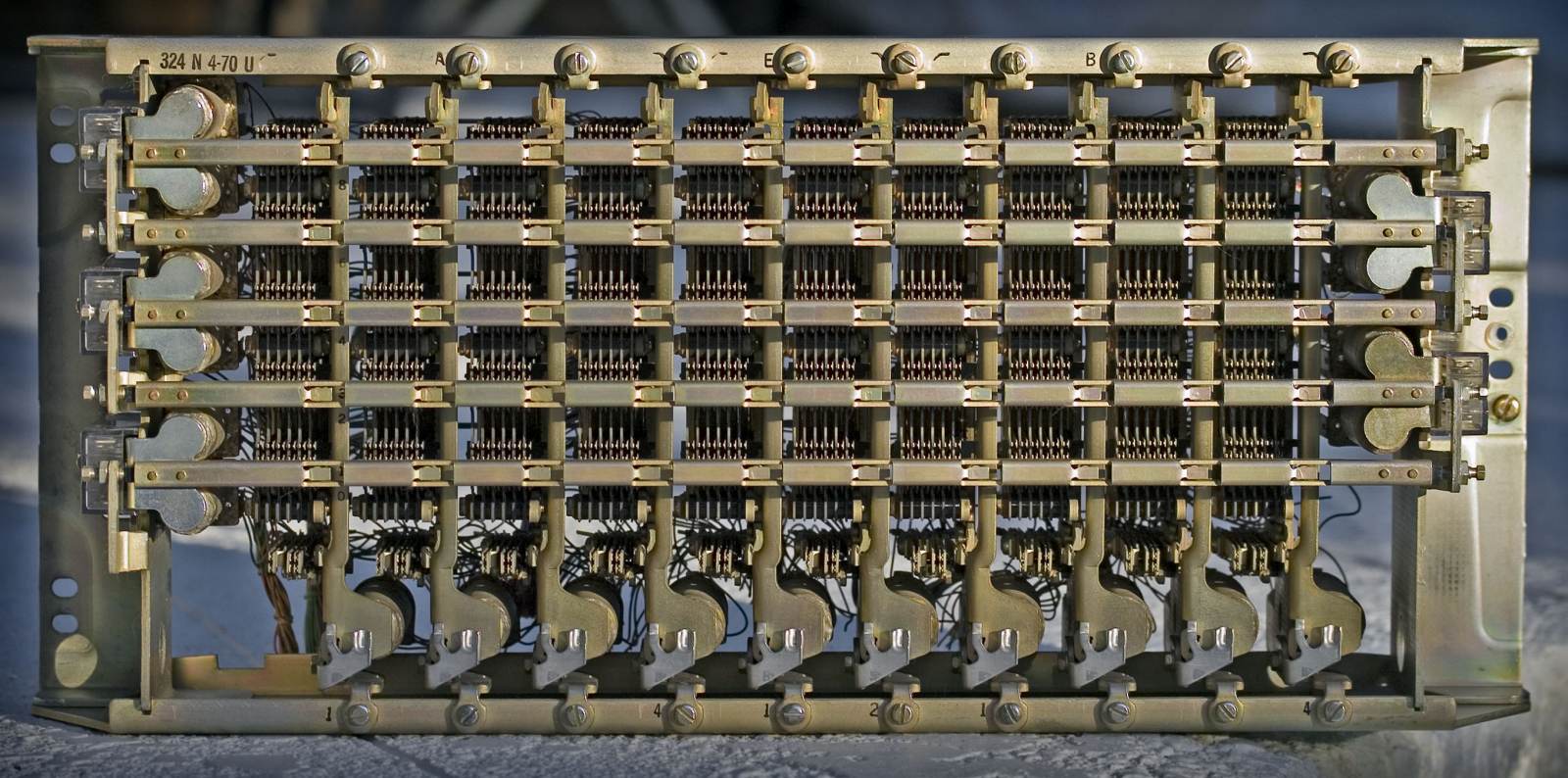 Let’s start with a picture of the front of a 10×10 crossbar switch:
