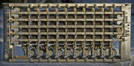 This post — the point of the series — discusses the very clever design that allows a 10×10 crossbar to use only 20 relays (here called “magnets”) to control 100 potential connection points within the switch.