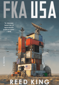 Yesterday I finished FKA USA (2019), by “Reed King” — a pseudonym of a “New York Times bestselling author and TV writer.” It was a new book at my library, and the blurb about it concluded, “FKA USA is the epic novel we’ve all be waiting for about the American end of times, […] It is a masterwork of ambition, humor, and satire with the power to make us cry, despair, and laugh out loud all at once. It is a tour de force unlike anything else you will read this year.”