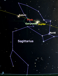 If you’re the type to keep an eye on the night sky, you likely already know those “stars” are Saturn (on the left) and Jupiter (on the right). What you may not know — and certainly can’t see — is that almost right smack dab between them is the former planet Pluto. All three just happen to be lined up nicely right now.